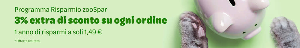 - Risparmiare il 3% su tutto ciò che è venduto e spedito da Zooplus.