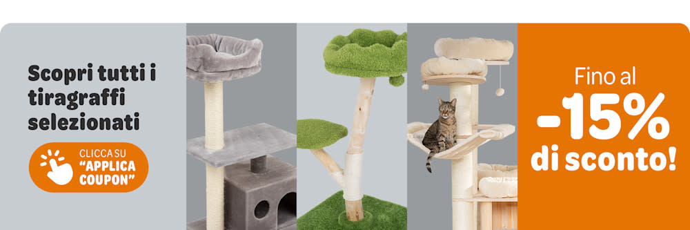Ogni gatto è unico e merita il meglio. Ecco perché abbiamo raccolto una selezione di tiragraffi di alta qualità, progettati per adattarsi alla personalità e alle esigenze del tuo felino. Esplora la nostra selezione di tiragraffidei nostri marchi Natural Paradise, Modern Living e TIAKI Nature, ora con uno sconto EXTRA speciale!