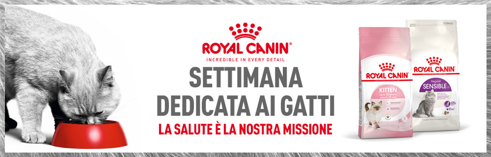 E con uno sconto fino al 20% sugli alimenti per gatti Royal Canin durante le nostre settimane dei gatti, ora è il momento perfetto per provare tutto l'assortimento che è stato sviluppato in collaborazione con allevatori e veterinari per un'alimentazione ottimale a sostegno della salute del tuo gatto.