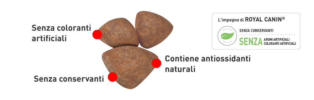 Le crocchette sono formulate con nutrienti specifici e sono facili da masticare, grazie alla loro dimensione. La consistenza, inoltre, grazie ad un effetto spazzola, sostiene la salute dentale. L'alimento umido supporta la salute delle vie urinarie e aiuta il cucciolo a mantenere il peso forma, proprio grazie al maggior contenuto di umidità.