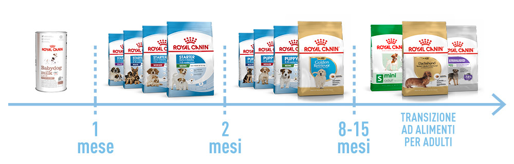 Comprendere come si reallizza la transizione del tuo cucciolo dalla nascita all'età adulta è fondamentale per fornirgli un'alimentazione adeguata ad ogni fase della sua crescita.