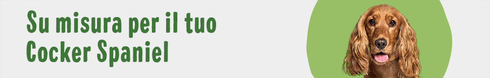 Il Cocker Spaniel con la sua indole vivace e affettuosa ha bisogno di un'alimentazione specifica in grado di prendersi nutrizionalmente cura della sua pelle e del suo pelo sensibile. È un cane esuberante e pieno di energia, che ha bisogno quotidianamente di movimento e di un adeguato controllo del peso. Le sue belle orecchie penzolanti devono essere pulite con attenzione per prevenire l'otite esterna. Questa razza così allegra e amichevole ama la compagnia e il movimento, e il suo benessere generale dipende da un perfetto connubio fra un'alimentazione sana, le giuste cure e una regolare attività fisica.